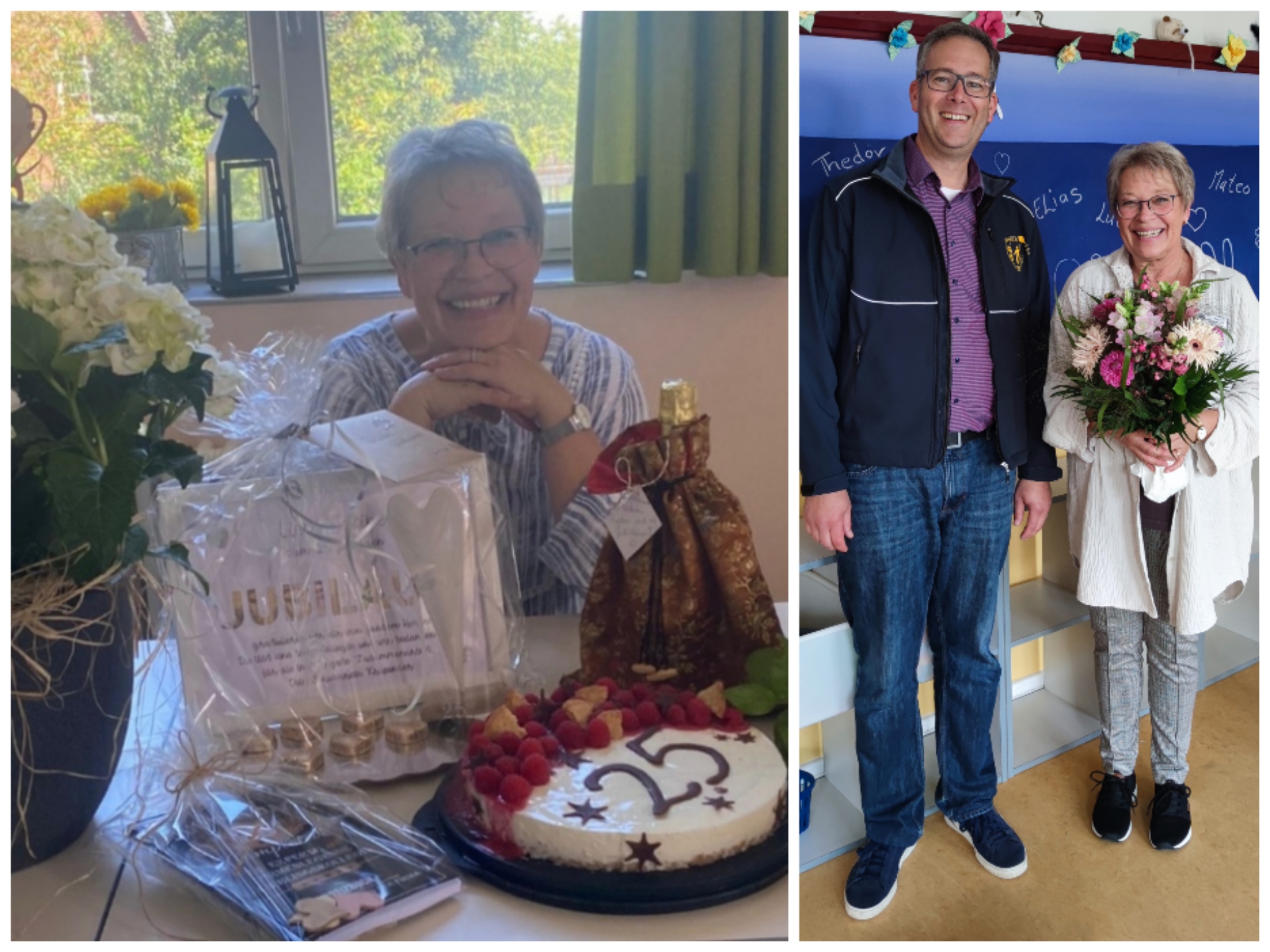 Was für ein tolles Jubiläum !!! Deine Kolleginnen von der Betreuung, Herr Biermann und das Lehrerkollegium, sowie der Schulverein danken dir von ganzem Herzen für deine vertrauensvolle stets gute Zusammenarbeit. Du bist eine Kollegin, die man sich nur wünschen kann.