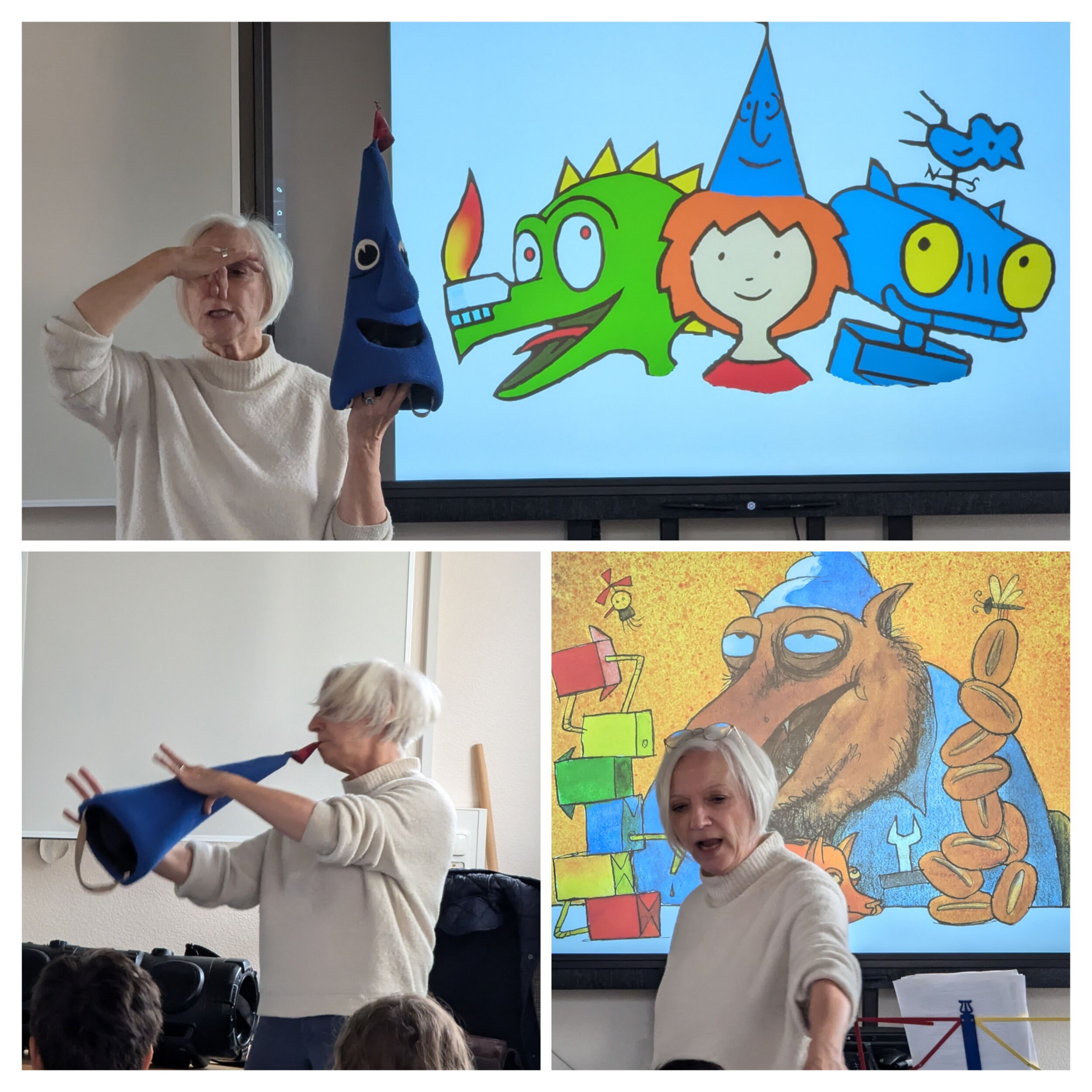 Patricia Parwitt, das Burgfräulein Bö aus Ritter Rost, besuchte unsere Schule für eine Lesung in den dritten Klassen. Unsere Erwartungen wurden mehr als Übertroffen! Frau Parwitt hat gelesen, gesungen, entertainet und uns alle mitgenommen in die Welt des kleinen Ritter Rost und seinen Freunden. WoW! Die Kinder wurden aktiv mit einbezogen und konnten mit Begeisterung an der getafelten Runde ...ähhhhhh... der Tafelrunde teilnehmen. Vielen lieben Dank für diesen literarischen Genuss.
