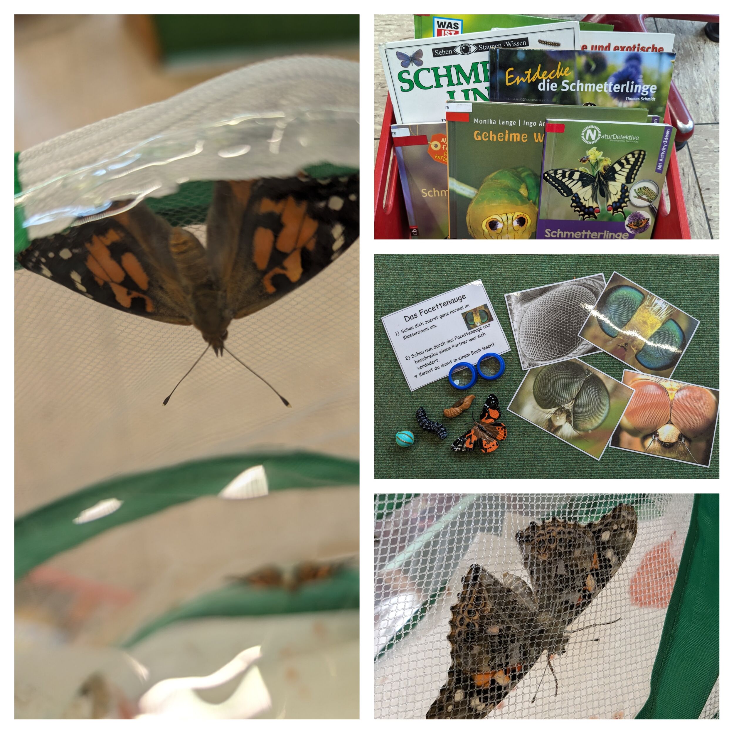 Seit ein paar Wochen beobachten wir im Klassenraum der 2b das Wunder der Natur. Zuerst haben wir fünf kleinen Raupen ein zu Hause gegeben und konnten beobachten wie diese groß und größer wurden. Anschließend wurden wir Zeuge der Verpuppung und nun.... haben wir wunderschöne Distelfalter zu Gast. Im Sachunterricht arbeiten die Kinder an Stationen zum Thema und freuen sich bereits darauf die Schmetterlinge bald in die Natur zu setzen. Wie gut, dass wir so viele Blumen angepflanzt haben, sodass sich die kleinen Falter ganz sicher noch länger sehr wohl an der EKS fühlen werden.
