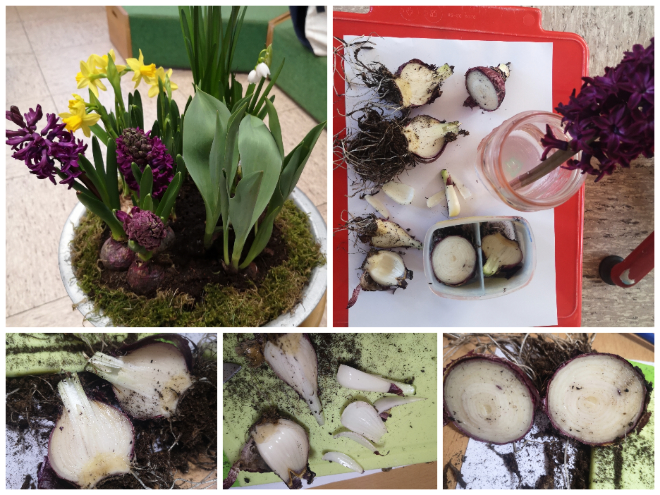 Die Klasse 1b empfing den Frühling und wir haben uns mit verschiedenen Frühblühern beschäftigt. Die Pflanzen wurden beim Wachsen beobachtet und genau unter die Lupe genommen. Von der Blüte bis zur Zwiebel wurde geforscht, gestaunt, geschnuppert, beschriftet, gemalt und skizziert.