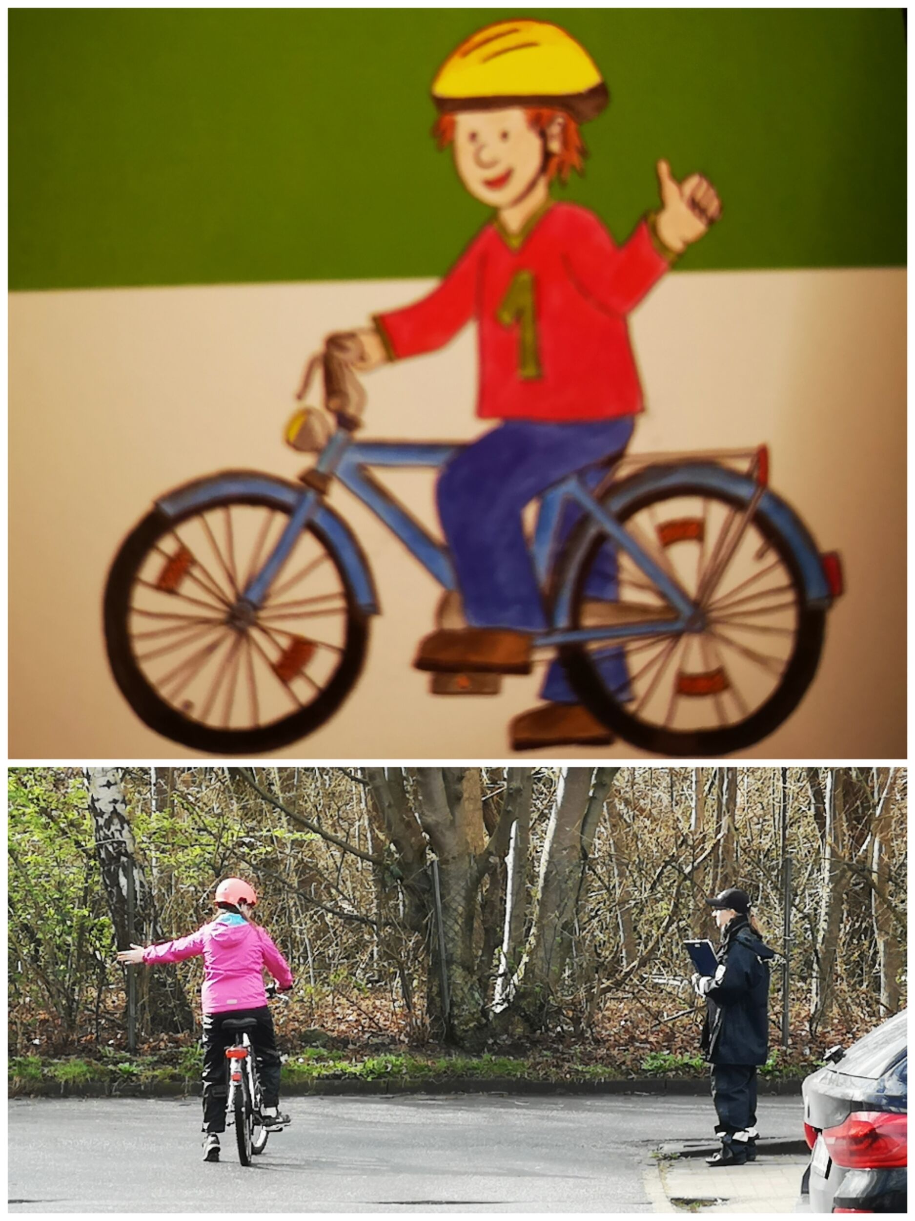 Nachdem die theoretischen Tests geschrieben waren, war am 30.3. die praktische Prüfung für die Viertklässler dran. Die Verkehrspolizistin Frau Brodersen hatte zuvor viel mit den Kindern an motorischer Geschicklichkeit, Vorfahrtsregeln und Linksabbiegen geübt. Am Montag werden sie erfahren, ob sie den Fahrradführerschein bestanden haben.