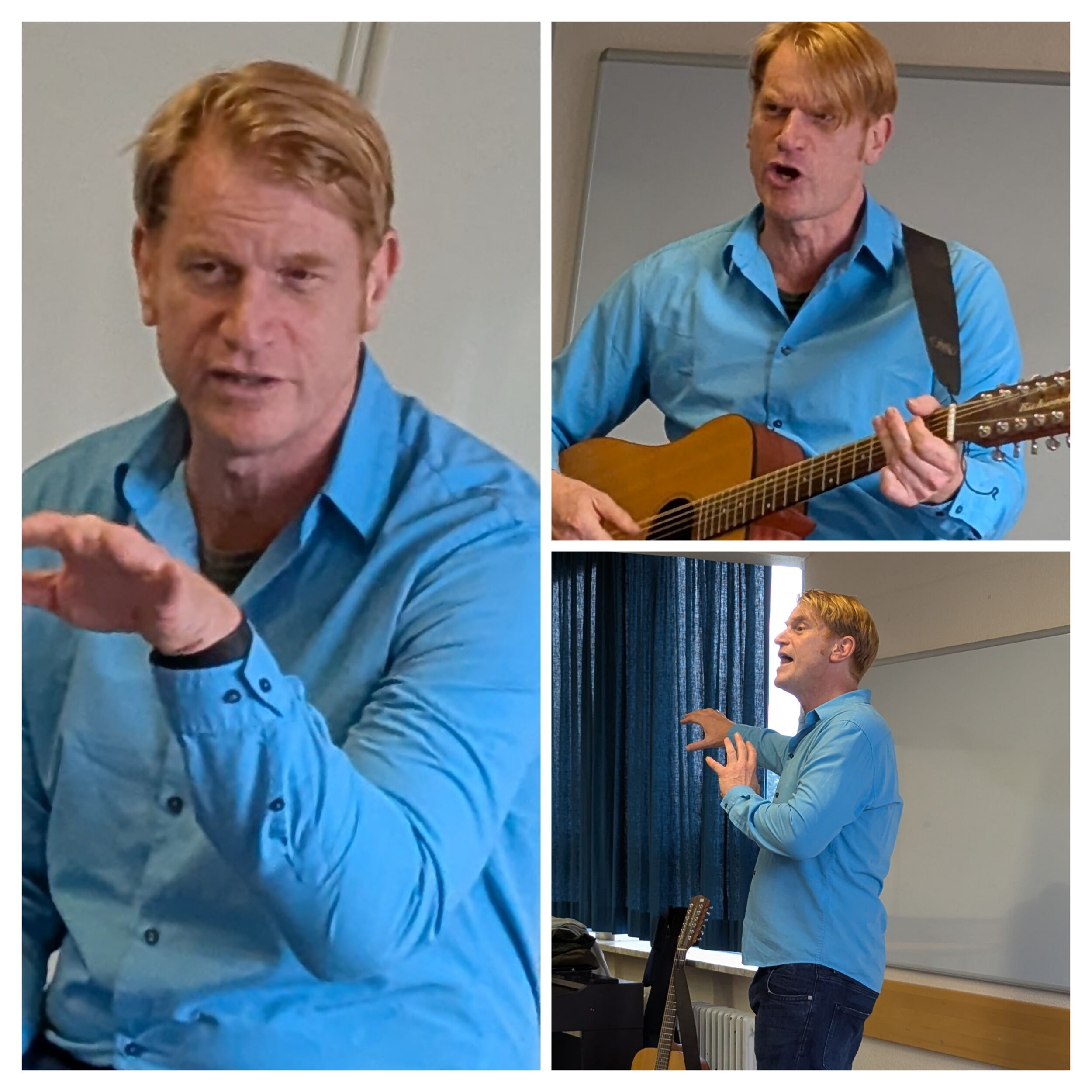 Der Filmschauspieler und Sprecher Enno Kalisch besuchte die EKS und brachte Musik und Unterhaltung an unsere Schule. Die dritten Klassen lauschten im Rahmen unserer traditionellen Autorenlesung diesmal Herrn Kalisch und konnten aktiv in die Erzählungen einsteigen. Denn er ist ein wahrer "Geschichtenfinder" wie er sich selber beschreibt, der mit den Kindern in Interaktion tritt und diese aktiv dazu auffordert seine Geschichten mit Leben zu füllen. Hereingerufene Wörter wurden kreativ und geschickt in einen neuen Erzählstrang eingearbeitet und mit wunderbarer Musik (Ohrwurmgefahr!) untermalt.