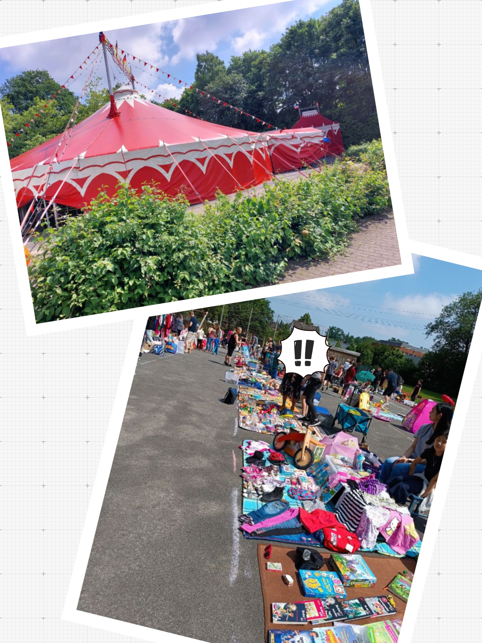 Am heutigen Samstag war es alles andere als ruhig auf unserem Schulhof! Es tummelten sich eine ganze Menge gut gelaunter Kinder und Erwachsene herum, die auf der Jagd nach kleinen oder großen Flohmarktartikeln waren. Jeder der sich angemeldet hat konnte sich mit seiner Decke ein schönes Plätzchen suchen und die aussortierten Dinge wieder "an den Mann" bringen. Wie schön es ist wenn diese ganzen Dinge wieder einen neuen Besitzer finden und so noch lange genutzt werden. Und nicht nur das war wundervoll zu beobachten... Auch auf dem Parkplatz der Sporthalle ging es weiter voran. Das Zirkuszelt unseres Zaretti- Zirkusses steht nun in prächtigen Farben da und verspricht eine aufregende Woche. Alle die Lust auf den "Duft von Zirkus", das bunte Treiben in der Manege und unsere Kinder als große Stars haben, werden mit Sicherheit in der kommenden Woche voll uns ganz auf ihre Kosten kommen.