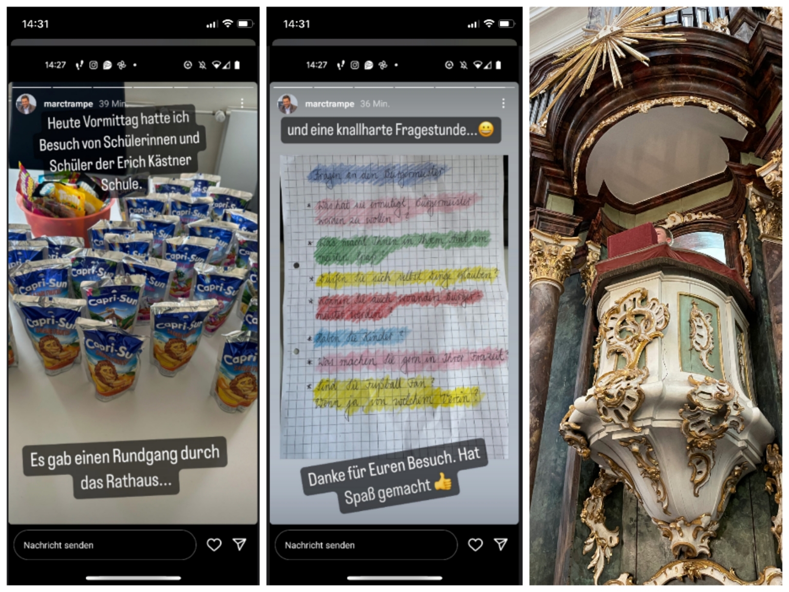 Zum Schluss durften wir sogar bei Herrn Trampe im Büro sitzen und ihm bei einer Caprisonne unsere Fragen stellen. Das war toll!